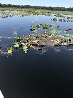 Met 45 mph scheren we over het water en onze driver laat de boot soms lekker door de bochten scheren. We zien gelukkig toch twee alligators zwemmen, een schildpad en veel vogels.