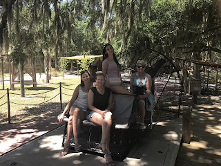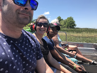 Om 13:10 is het tijd voor onze Airboat ride. Koptelefoons op, want het geluid is oorverdovend.