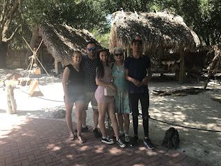 Na ongeveer een half uur rijden komen we aan bij een meer. We lopen wat rond in het parkje met een bassin met kleine alligators en een Indiaans dorpje.