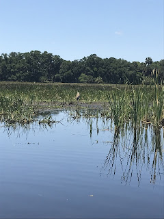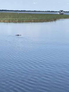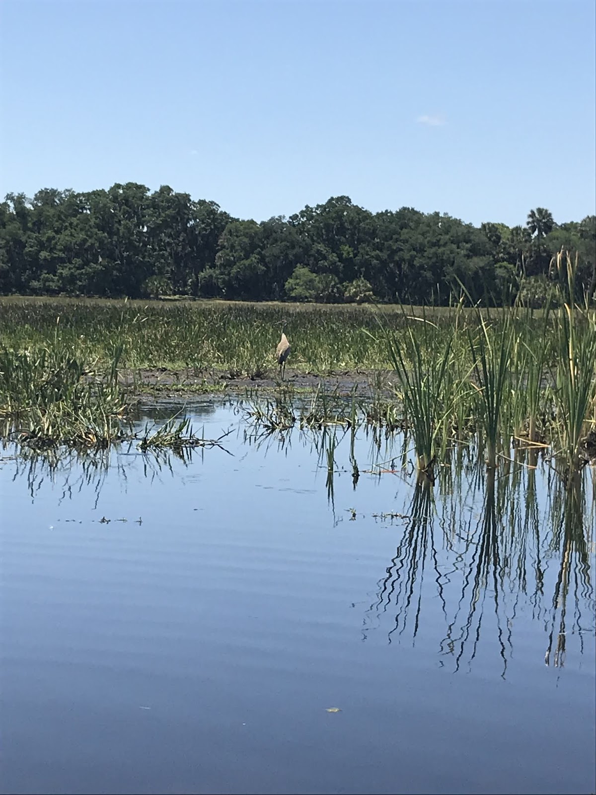 Met 45 mph scheren we over het water en onze driver laat de boot soms lekker door de bochten scheren. We zien gelukkig toch twee alligators zwemmen, een schildpad en veel vogels.